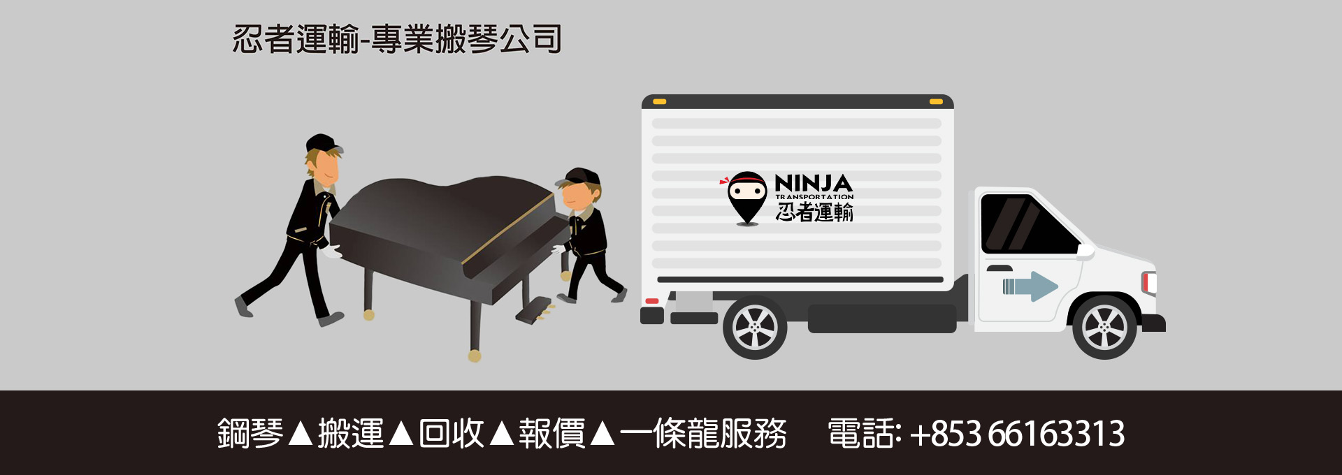 忍者運輸-專業搬運公司,成立於2017年,致力於專業搬屋 搬琴搬運業務,三角琴安裝,拆琴,樓梯搬運,調音,宴會租借三角琴。